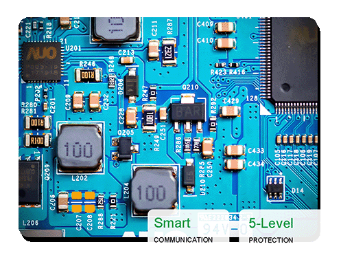 Our BMS provides comprehensive safety shields against over-charge, over-discharge, and short-circuits. Features include smart hibernation, Bluetooth data transmission, and precise SOC monitoring.
